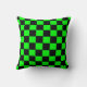 Un patrón clásico de tablero de ajedrez en negro y verde lima adorna esta almohada de tiro. Un gran diseño que funciona para cualquier estilo, desde retro a moderno.