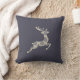 Elegante y a la moda, este Navidad arroja cojín es una adición elegante a tu armario invernal con un bonito patrón azul de tela detrás de una silueta de reno.