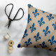 Cojín Decorativo Patrón Fleur de Lis, azul francés real en crema