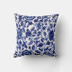 Cojín Decorativo Patrón floral azul marino oscuro chino sobre blanc