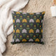 Un patrón sorprendente con flores amarillas y violetas con tallos verdes y hojas sobre un fondo negro.