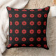 Cojín decorativo de patrón geométrico de hexágono negro y rojo.