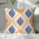 Cojín Decorativo Patrón Ikat Ogee Azul Marino y Naranja