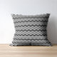 Esta almohada moderna de tiro presenta un patrón monocromo de chevron moderno en negro, blanco y gris.