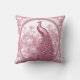 Ilustracion vintage de pavo real rosado y almohada decorativa de fondo arroja.