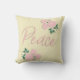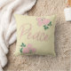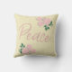 Paz con diseño de peonías rosadas de Leebrick Prints. El color de fondo de esta almohada (se muestra amarillo claro) es personalizable.