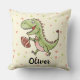 Esta almohada personalizada de tiro presenta una bonita y caprichosa T-Rex con un fútbol con corazones pequeños en el fondo. Es perfecto para los amantes del fútbol. Personalizar con el nombre de su bebé por un toque único.