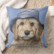 COJÍN DECORATIVO PERRO MARRÓN Y BLANCO CON GORRA AZUL
