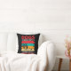 La almohada de diseño de los amantes del perro coloridos con rojo, blanco, azul, amarillo y crema en un fondo que puedes cambiar a cualquier color que quieras, incluye un árbol de silueta y una persona con un perro y texto dice Perros Hazme feliz a los humanos me duele la cabeza!