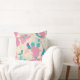 Magnifique coussin avec des perruche bleues posées sur dés pivoine roses.