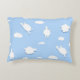 Personalised baby blue pillow with whimsical pattern of fluffy clouds and clouds in the shape of sheep.