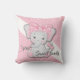 almohada infantil para el vivero. Un personalizado lindo elefante bebé en un fondo rosado de puntos de polka blanco. Un regalo ideal para una niña lista para personalizar la información de nacimiento de su bebé.