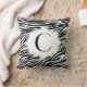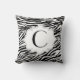 Patrón de impresión de cebra blanca negra personalizado almohada decorativa de lanzamiento/lanzamiento con un patrón de impresión animal y tu monograma de texto en un marco gris. Este diseño moderno y monocasco es perfecto para una casa de estilo retro/vintage o moderno/contemporáneo.