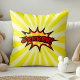 ¡Grrr! Cojín decorativo de superhéroe de estilo vintage de historietas. La almohada de moda de historietas lindas con rayos de luz y puntos de tono medio. Gran pieza de decoración de arte pop para tu dormitorio de superhéroes para niños! Personalizar esta almohada con su propio color de fondo haciendo clic en el botón "personalizar".