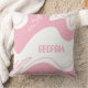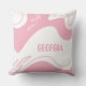Patrón minimalista en tonos violeta, rosa y blanco, diseño con hojas, líneas de doodle y olas. Cojín decorativo personalizado