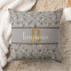 Esta encantadora y moderna almohada tipográfica personalizada en un diseño con estampado de color grisáceo espera su personalización personal.