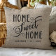 Lleve calidez y encanto a su hogar con esta almohada personalizada rústica "Hogar Dulce Hogar". El elegante guión y el nombre de la familia personalizable crean un toque acogedor para su sala o dormitorio. La tela de arpillera añade un toque de encanto rústico que complementa varios estilos de decoración del hogar.
