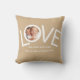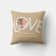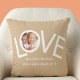 Esto "¡Te Amamos, Papá!" Foto Pillow está decorada con la palabra LOVE en tipografía blanca sobre un fondo bronceado. Personalizable fácil con tu foto y nombre. Perfecto como regalo del Día del Padre.