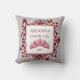 Fluttering red butterflies pillow is versatile for burgundy or ruby theme colors. Butterflies and gemstone tiara can easily be resized and repositioned on throw pillow. Say congratulations with a burgundy red princess design. Decorative, leafy border beautifully surrounds your message.
