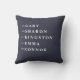 This design features the family name, the word "HOME" with the heart shape, year establish on the front. On the back side it is the list of family members with year of birth (which is optional). This simple stylish pillow is a perfect additional to your family room decoration. It is also a perfect gift for house warming and family gift.