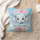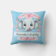 Add a touch of sweetness to any room with this personalized pink elephant throw pillow! Featuring a cute baby elephant surrounded by soft pink flowers on a calming blue background, this pillow can be customized with names, dates, or special messages like “My Little Angel” or “Happy Birthday.”