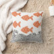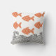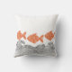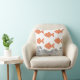 Pescado y olas arrojan almohada. Los peces se representan en un suave naranja de terracota y están decorados con un delicado patrón floral, añadiendo un toque caprichoso de inspiración japonesa. Las olas de abajo están ilustradas con líneas negras finas en un estilo tradicional de carpintería,