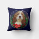 Petit Basset Griffon Vendeen posa bonito dentro de una corona de Navidades. Grandes regalos para los amantes de PBGV. Tarjetas de navidad, ornamentos, ropa y otras ideas de regalo.