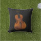 Esta elegante almohada al aire libre ofrece una vida clásica de un viejo violín. Este instrumento elegante es esencialmente una caja de madera hueca con extremos redondeados, dos agujeros elegantes y un centro estrecho. Los cuatro conjuntos de cuerdas se extienden desde un soporte de cadena en la parte inferior del cuerpo sobre un puente elevado hasta el extremo del cuello estrecho, o el diapasón donde las cuatro cadenas se insertan en una caja pegada y se mantienen allí con clavijas. Las clavijas se utilizan para afinar el violín. Cuando el arco se dibuja a través de las cuerdas en el cuerpo del violín, ¡produce una música increíble y mágica! Los magníficos tonos marrones dorados, casi naranjas, están decorados con un elegante tejido de terciopelo negro. La imagen se repite en la parte posterior.