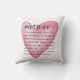 A mamá le encantará esta almohada linda que define a una madre, con un gran corazón rosado. El corazón es opcional; puede quitarlo si lo prefiere. ¡A pesar de todo, tu madre está segura de valorar esto! Haga clic aquí para ver la información: https://www.zazzle.com/mother_definition_coffee_mug_with_pink_heart-256864122138853809 Haga clic aquí para ver un tote: https://www.zazzle.com/mother_definition_w_heart_tote_bag-256527276085073284