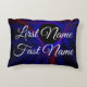 Crea un regalo humorístico para ti mismo o para un amigo con este nombre cambiar almohada de acento geométrico. Este producto presenta personalización de texto de primer y segundo nombre. En la parte posterior de la almohada, cambie las primeras letras de su frente y los apellidos para crear un nuevo nombre interesante que pueda mostrar a sus amigos. Disfrute de un regalo colorido que presenta un tema geométrico triangular de color azul rojo. Compra el tiro y las almohadas redondas para completar el juego.