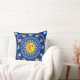 Rueda zodiaca con signo de zodiaco, sol y luna sobre un fondo azul real.