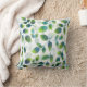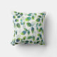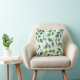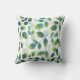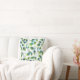 Almohada impresa con un patrón abstracto de hojas en azul acuático, verde y blanco, a partir de la pintura acuarela original.