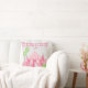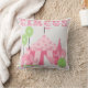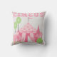 La almohada de Pink Circus Fun incluye dos elefantes rosas, uno en un gorra fiesta, una bola verde y globos, rayas rosas y polka punteados en la parte superior, y el texto que dice "Circo".