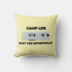 La almohada presenta un diseño clásico y minimalista de un remolque RV. El titular y el eslogan están impresos en una fuente audaz, de inspiración vintage, que complementa el atractivo atemporal del avance. La estética general evoca una sensación de aventura, nostalgia y la libertad del camino abierto.