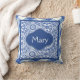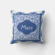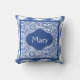 Monograma o almohada de texto. Bonitos tonos azul y blanco índigo, adornados en el borde exterior y floridos en el interior, con un gran medallón de azul índigo en el centro. El texto está listo para que usted edite en AMBOS lados de esta bella almohada de lanzamiento. Elija entre almohadas cuadradas de 20" x 20" o rectangulares de 13" x 21" estilo bolster. Las almohadas están hechas de algodón trenzado 100% grado A, o poliéster duradero, y se ven muy bien en cualquier habitación, desde la habitación hasta la sala de estar, la habitación familiar o el porche delantero. Producido por madres solteras que trabajan de manera sostenible en Estados Unidos, su compra de almohadas personalizados contribuye a romper el ciclo de pobreza para las madres solteras y sus hijos mientras que se ve genial en su hogar! Diseños de Scarebaby Design, respaldados por la garantía Zazzle.