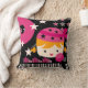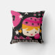 A tu hijo que le encanta cantar, karaoke, el teclado y ser una estrella de rock le encantará nuestra almohada de diseño rosa y negro de estrella de rock negro con un chica con gorra de cráneo rosa, micrófono, teclado, álbum de discos y fondo estelar negro.