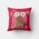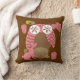Si te gustan las lechuzas, te encantará esta almohada de búho rosado y marrón con una lechuza con hojas de colores, un conejito, un árbol y bellotas en rosa y marrón.