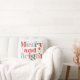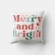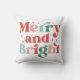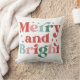 El texto de estilo retro dice Merry y Bright sobre este colorido Navidad arrojar almohada.