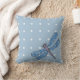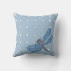 Este Cojín decorativo Artsy Dragonfly presenta mi libélula de arte digital en un fondo azul con puntos de polka blancos.