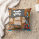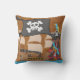 Un niño pirata afroamericano lleva a un gorra con un loro sentado en el borde. Un barco pirata con canon y una bandera de calavera y cruces sobre una almohada que tu pequeño pirata seguramente ama.