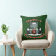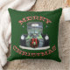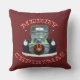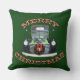 Una foto de una camioneta vintage de 1947 ha sido tocada en una imagen rústica falsa de la acuarela. Hay una corona de Navidades decorada con una cinta roja y bolas en la parrilla del camión, la frase Feliz Navidad está llena de franjas de candyán rojas y blancas. El diseño está a ambos lados de la almohada, una parte de la almohada tiene un fondo verde profundo y la otra roja oscura. Si lo prefiere, puede cambiar los colores de fondo a colores diferentes.