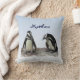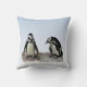 Esta almohada de tiro contiene dos adorables pingüinos africanos sobre una cornisa rocosa. Son pájaros acuáticos y sin vuelo cuyas alas se han convertido en aletas. Cada una tiene una franja negra y manchas negras en el pecho. El patrón de puntos es único para cada pingüino, al igual que las huellas dactilares humanas. Tienen glándulas rosas sobre sus ojos y pies rosados y negros. La imagen se repite en la parte posterior. Puede cambiar el texto al nombre de su elección o eliminarlo por completo.