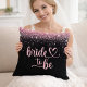Celebrate the bride-to-be in style with this elegant “Bride To Be” throw pillow featuring soft pink script lettering on a chic black background with sparkling glitter accents.