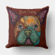 Único rostro loco de Bulldog francés con audaces y coloridos patrones abstractos en un fondo rojo. Popular con los amantes del perro y de las mascotas y los amantes del rescate de los perros.