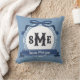 Cojín Decorativo Pizarra Azul Reverso Llave Griega Arco Monograma