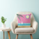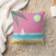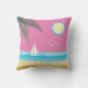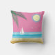 Este divertido cojín está decorado con un paisaje tropical de playa acentuado por las estrellas de mar, las gaviotas, el velero y las hojas de palmera sobre un fondo de cielo rosa, lo que lo convierte en el accesorio perfecto en verano para el salón, dormitorio, cabaña, patio, terraza o zona de piscina.