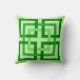 Colocar la almohada en un patrón retro moderno de cuadrados entrelazados, en tonos lima a verde esmeralda, sobre un fondo verde de menta pastel