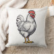 Una representación de estilo personalizado muestra un orgulloso pollo blanco con plumas detalladas y un peine rojo brillante. La gallina se mantiene confiada en un fondo liso, destacando sus contornos agudos y audaces.