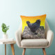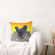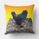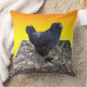 Pollo, cushión, presentado en un fondo amarillo dorado es un pollo negro esponjoso en un diseño de arte dimensional de Popout, https://www.zazzle.com.au/naturalcauses*