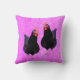 En la imagen de un magenta caliente reversible y de fondo rosado se ven dos pollos negros